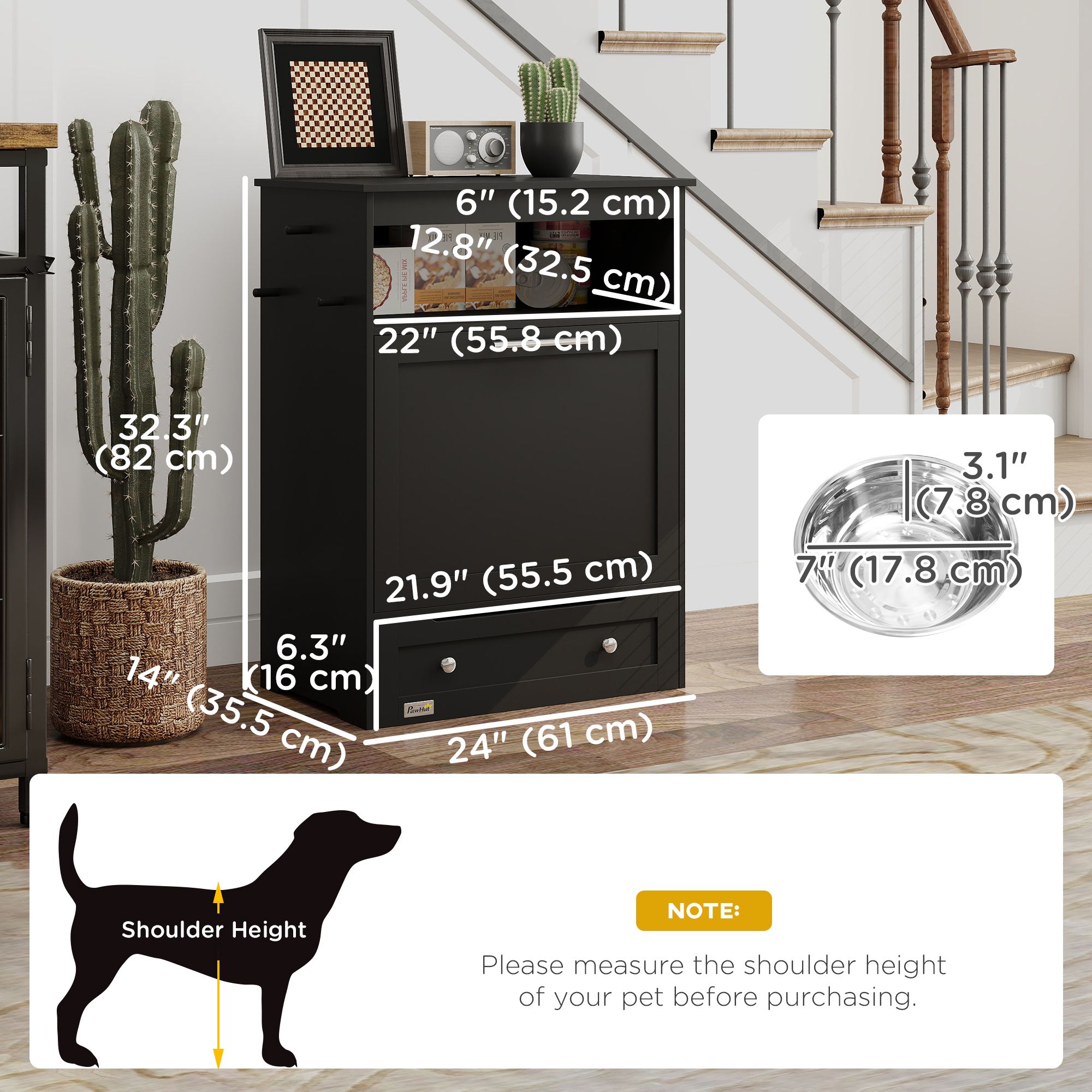 Home > Pet Feeder Station Storage Cabinet, Dog Food Storage Container with Dog Raised Bowls, Watering Supplies, Black
