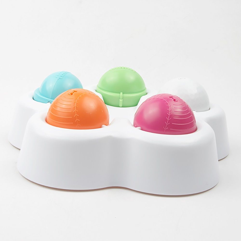 Dog food toy has 5 treat compartments balls, will keep your dog busy while teaching them problem-solving skills. Dog feeder makes the puppy need to work for food and get rid of laziness.