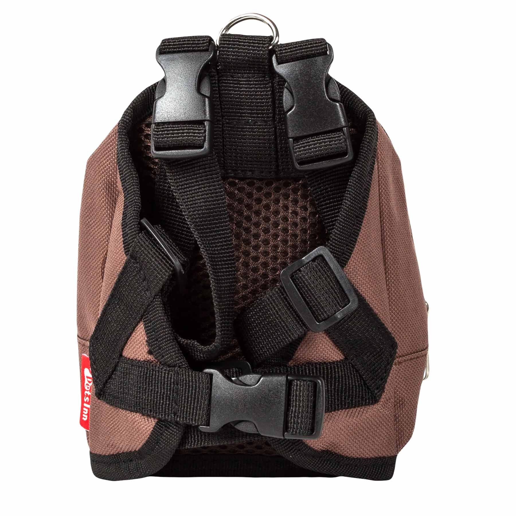 2.Features an Above Stainless Steel Harness Ring with Dual Adjustable Straps along the back-side